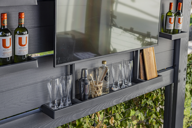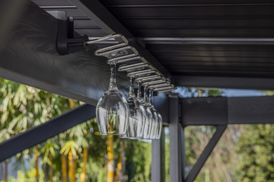 The Bar Gazebo is a practical solution that will provide you and your loved ones with unforgettable, relaxing moments outdoors. You don't need to spend time on annual maintenance and repairs, nor worry about pests. Thanks to its weather resistance, lightweight construction, and ease of assembly, which requires only two people, you can create a new space in your garden! The Bar Gazebo features additional shelves and offers the possibility of connecting electricity. The product is made from recycled materials. Unlike traditional gazebos, the Bar Gazebo does not require deforestation or the extraction of natural resources, making it a conscious and responsible choice.