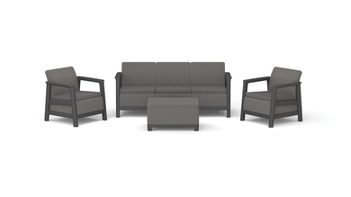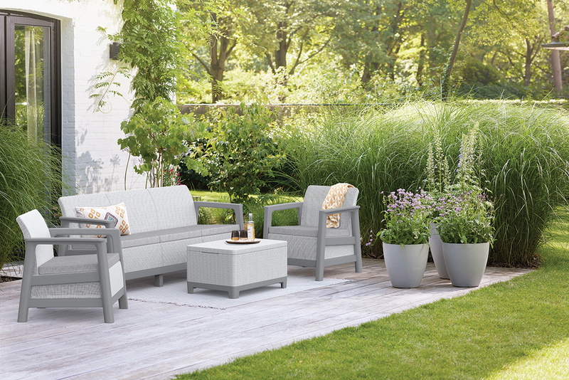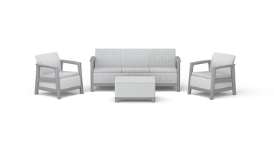 The set is resistant to moisture, rain, and UV radiation, ensuring its aesthetic appearance for many seasons.