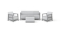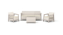 The Scandi Linea set includes two armchairs, a three-seater sofa and a practical table with additional storage space.