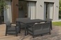 The Scandi Linea Fiesta lounge and dining set combines natural aesthetics with the comfort of everyday use. The decorative jute-inspired structure gives the furniture a pleasant, timeless character, making it perfect for gardens, terraces, and larger balconies – both for relaxation and shared meals.